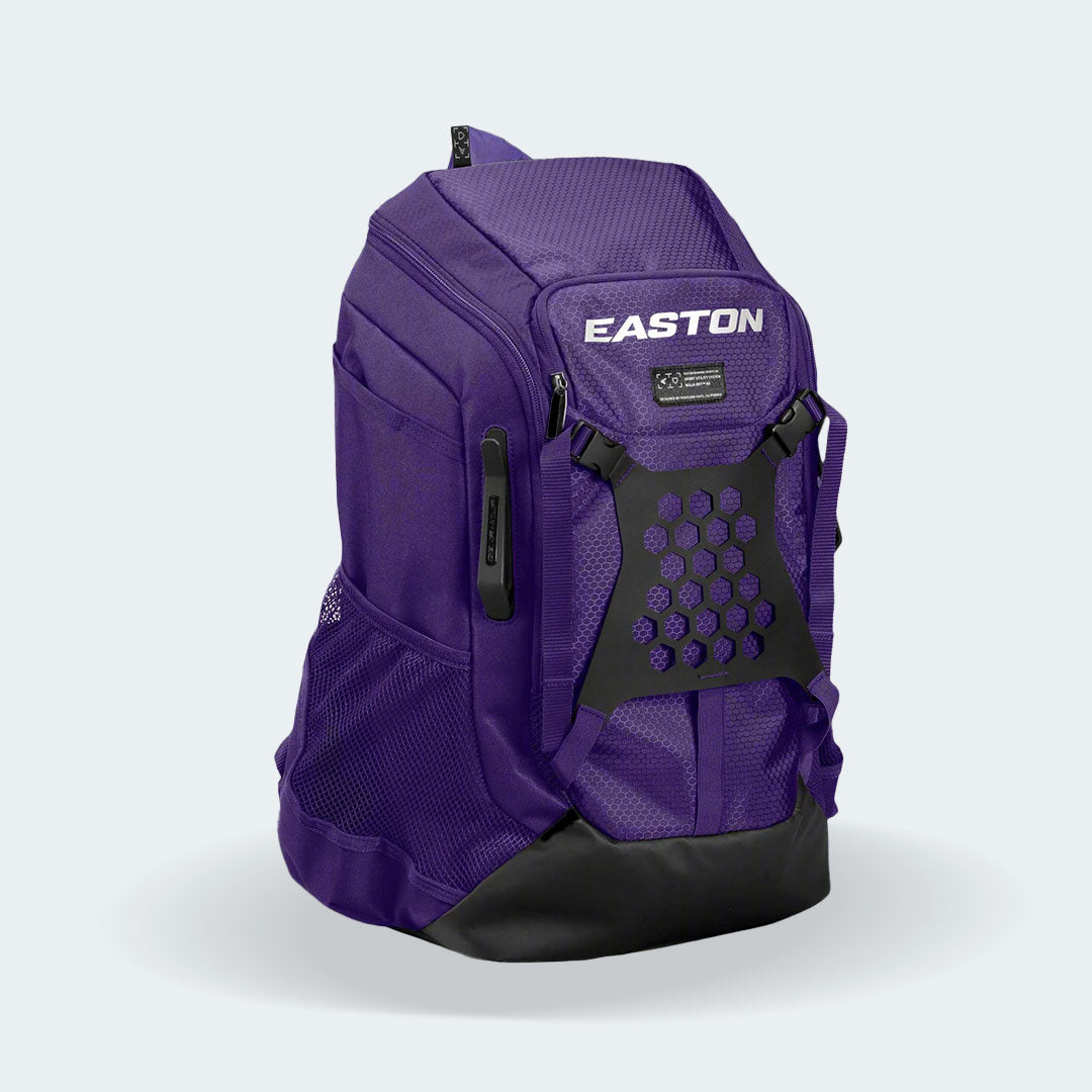 Complete the Ghost collection with Easton’s new Ghost Fastpitch Backpack. Patented personal mirror protected by a top flap for applying face products, as well as visor, headband or bow adjustments. Hidden external helmet holder can be stowed away when not in use. Two bat sleeves to specifically fit 2 ¼” softball bats. Vented show compartment and front pocket for team embroidery. Female specific padded back and shoulder straps for comfort.