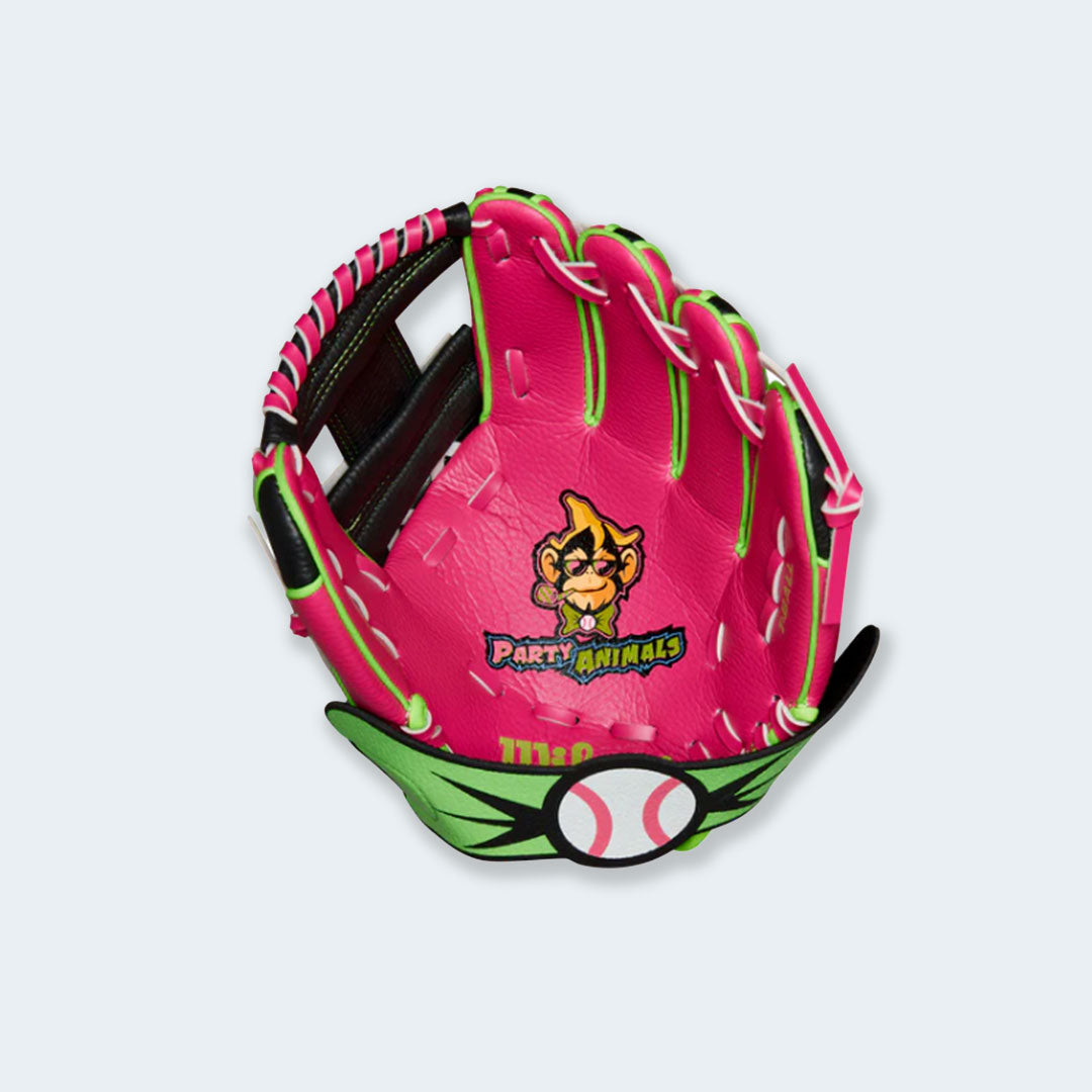 A bold Party Animals™ logo stamped in the palm gives young players a fun visual cue and a playful look that makes practice and games more exciting.