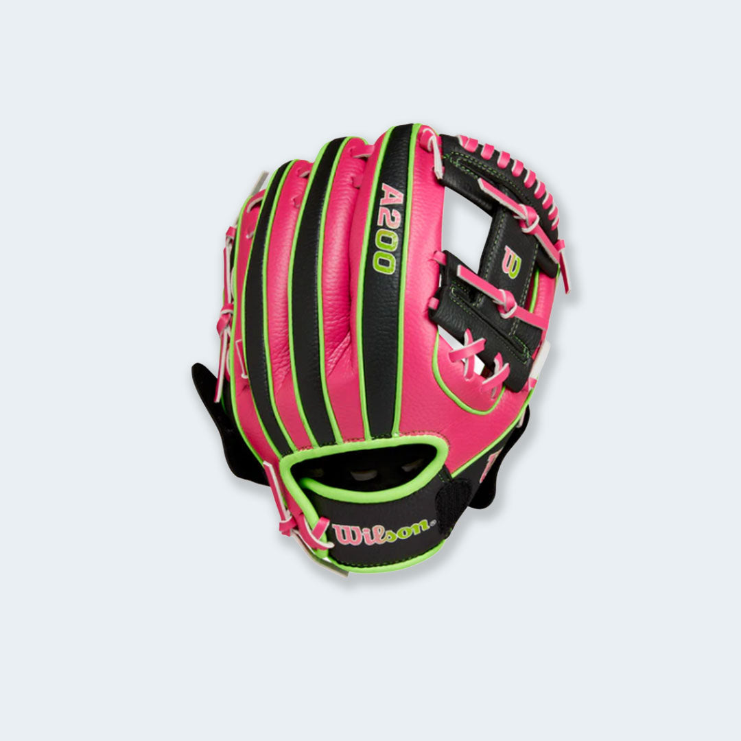 Turn every game into a party with the Wilson A200® EZ Catch™ Party Animals™ 10" T-Ball Glove. Designed for young players just learning the game, this glove features a fun Party Animals™ palm stamp and an EZ Catch strap to help new ballplayers secure the ball and build confidence in the field.