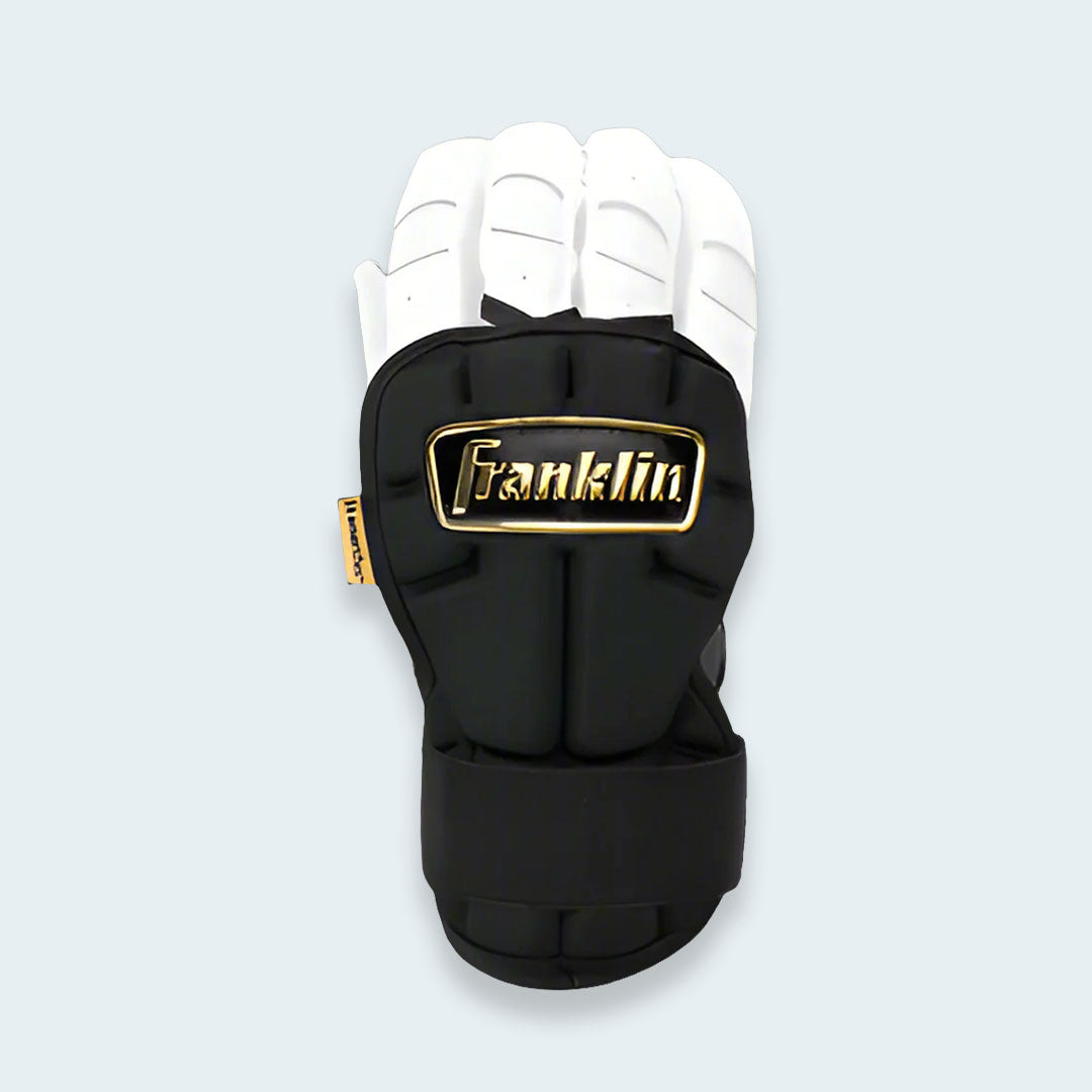 Regular price €45,00Protect yourself at the plate with Franklin Sports' PRT LG Baseball Hand + Wrist Guard! Give yourself confidence and peace of mind when you step into the batter's box with this protective hand and wrist shield. With so many small and fragile bones in the hand, hit-by pitches can be costly in terms of pain and injury. This hand and wrist protector pad is designed to absorb the force of the impact to reduce the likelihood of injury. This adjustable baseball hand guard is easy to strap on and is designed to be sleek and comfortable so it won't impede your swing. The soft-shell protector hardens on impact to lessen the damage caused by the ball and gives players added confidence during their at-bat. The LG Hand and Wrist protector also offers double the coverage of other hand guards on the market by extending down the wrist for additional protection. Designed to be sleek and lightweight, this hand guard is designed to fit comfortably for both right hand and left hand hitters. Plus, over time, the flexible interior shell will mold to the shape of your hand for a unique, comfortable fit. So step to the plate with ultimate confidence and protection for your next at bat and grab your PRT LG Baseball Hand + Wrist Guard today!