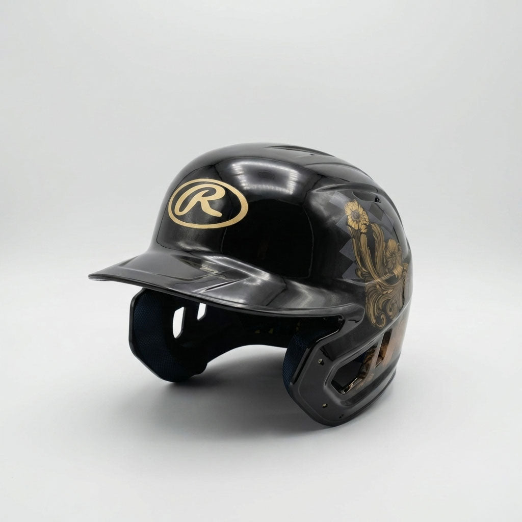 This exclusive Rawlings Mach 91-Rev-A baseball helmet in size 7 5/8 – 7 3/4 has been hand-painted and customized by the renowned Brazilian artist Ivan Da Silva (@dasilvacustomkickz), turning it into a truly unique and one-of-a-kind piece.