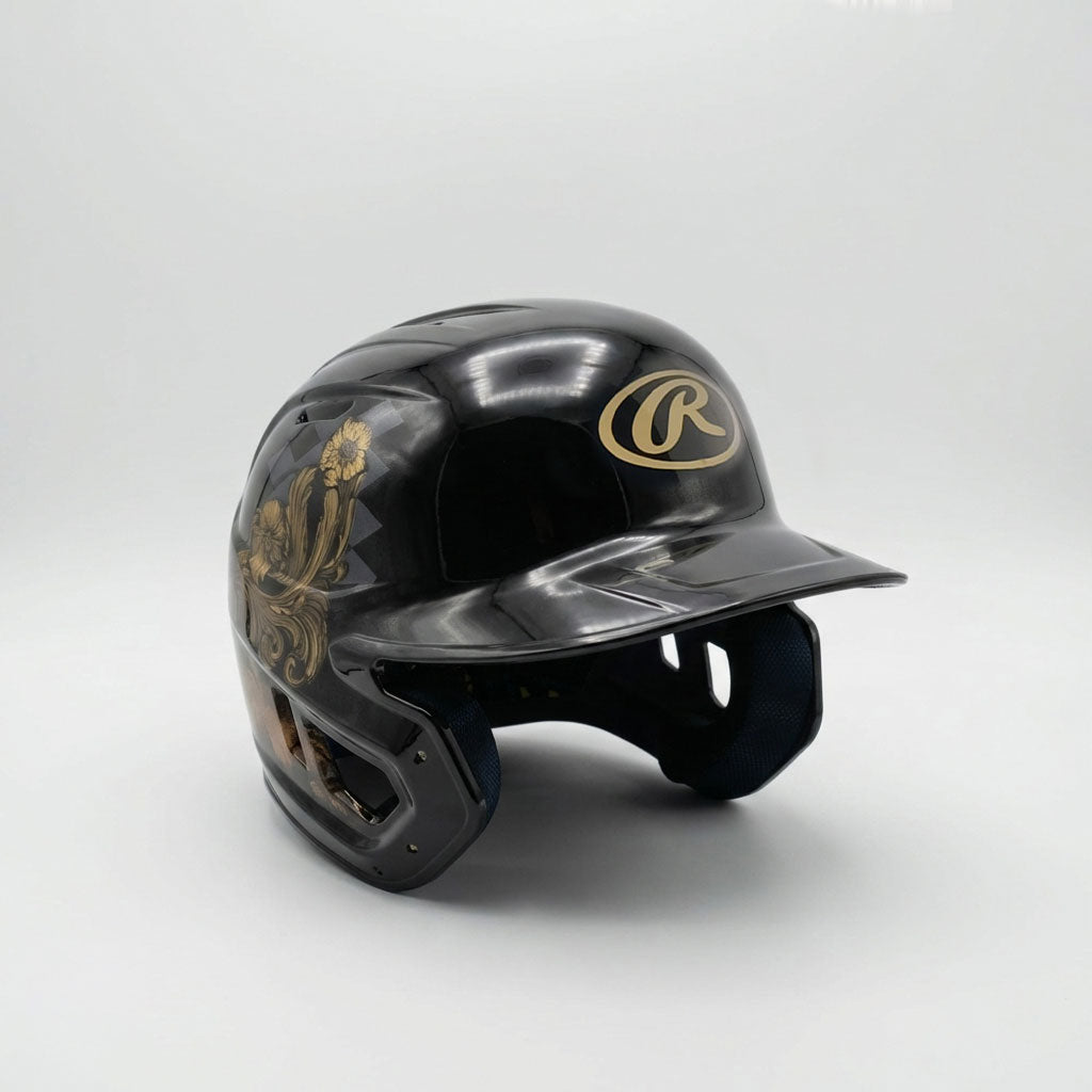 The design features an elegant black base with gold details, creating a sophisticated and eye-catching contrast, with a high-end artistic finish and exceptional attention to detail. Every brushstroke has been carefully applied, making this helmet not only a functional piece of equipment but also a true collectible work of art.